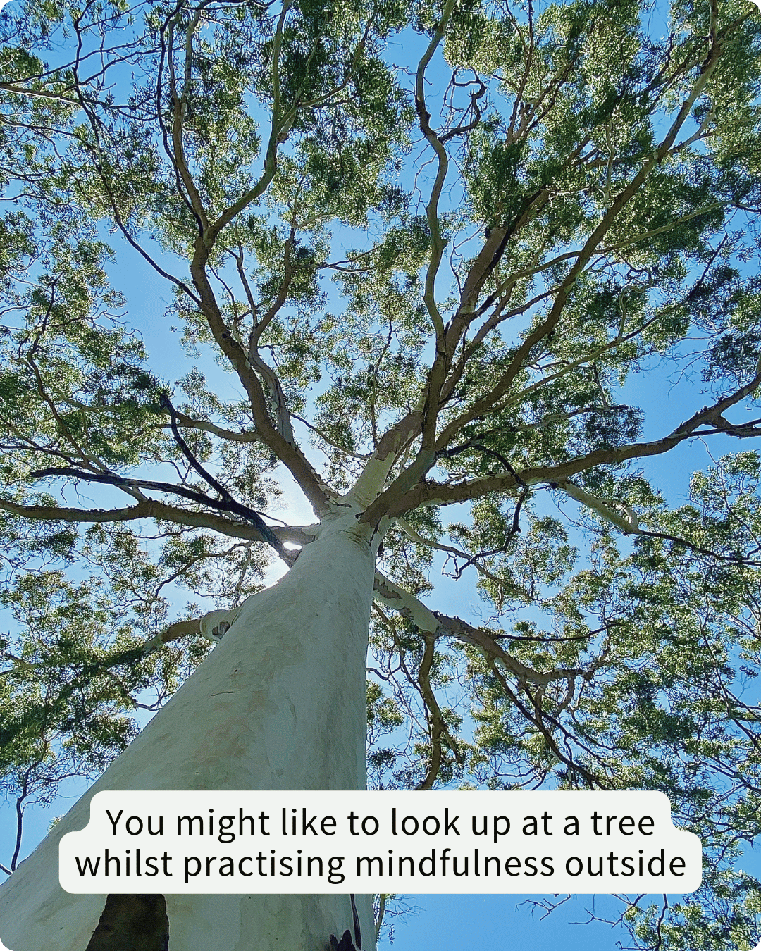 Sensory - you use your senses to notice shapes, calls, colours, behaviour, movement, textures, shadows and light. Sensory experiences naturally anchor you to the present moment.